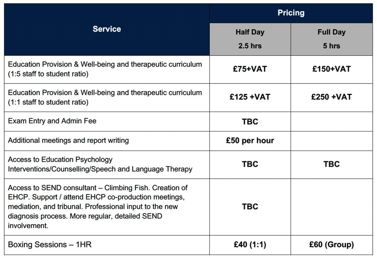 We offer both half and full-day rates with a maximum of 2 days per week. If you’re looking for something shorter, or slightly longer than the half-day session we’re happy to work out a solution that fits your needs. Below shows our service description and costs.